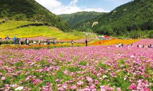 今年十月,记者来到青海省西宁市大通回族土族自治县朔北藏族乡边麻沟村,那时正值花开的季节。进入花海,一簇簇颜色各异的花儿,配上远处的青山绿水,仿佛仙境一般。