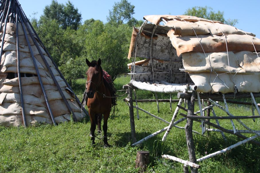 图片说明:鄂伦春族奥伦和鄂伦春猎马
