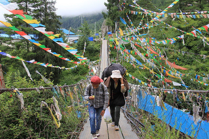 历史的印记化为荣耀感深植于吉隆人的骨髓,在他们的认知中,这里是神佛光芒映照的宝地,是中央政府重点关照的要隘。这块宝地四季葱郁,气温宜人。夏季,沿着尼泊尔公主进藏的番尼古道徐徐前行,不时有羽毛绚丽的飞鸟落在繁花中,还能见到让人又恨又爱的野猴子。这些猴子时常到田地中抢作物,吉隆人宽厚地说:这些动物也世居在这里,人在变聪明,猴子经历了那么多,也知道怎么能让生活变得容易一些。