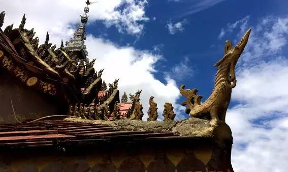独特的屋脊神兽传播的是一个民族关于文化和宗教的信念和记忆。景洪傣族在佛寺象鼻凤凰:景洪傣族屋脊神兽