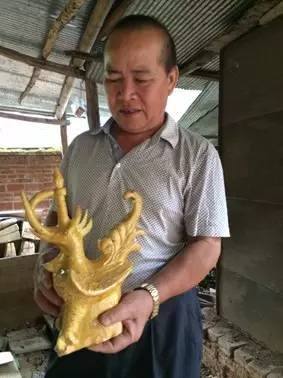景洪傣族的佛寺土陶用品可以归纳为两种,建筑用品和祭祀用品。屋脊神兽属于佛寺用品建筑用品,基本上都是男性制作。现在为止,西双版纳做屋脊神兽的艺人已经寥寥无几,据初步考察,现在还在坚持制作佛寺上的陶制屋脊神兽的只有景洪市曼阁村岩罕滇、玉章凤和勐海县勐遮镇景真村岩光罕、岩温教、岩说五个人。