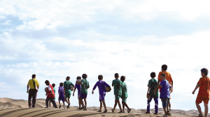 下车后,映入眼帘的场景却让比利震惊,因为这场景跟他15年前踢球的场景几乎一样。炽热的太阳下,一群又瘦又黑的男孩整齐地排着队向前走,那是一条弯曲的小路,路的尽头是浩瀚无垠的沙漠。孩子们夹在怀里的足球,许多都已“皮开肉绽”了。
