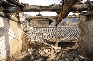 村民们离开后,房屋因无人维修逐渐倒塌,留下了一具具空壳。