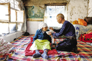 韩生志侍候瘫痪在床的母亲3年了,我问他,“累不累?”他说:“不累,老妈妈生养了我一回,现在她动不了了,正是用上我的时候,我哪能丢下她不管。自古以来养儿就是防老的,老妈妈在哪里我就在哪里。”