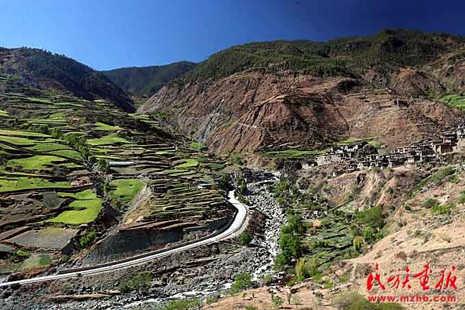 穿越俄亚大村前的公路,连接香格里拉旅游圈。