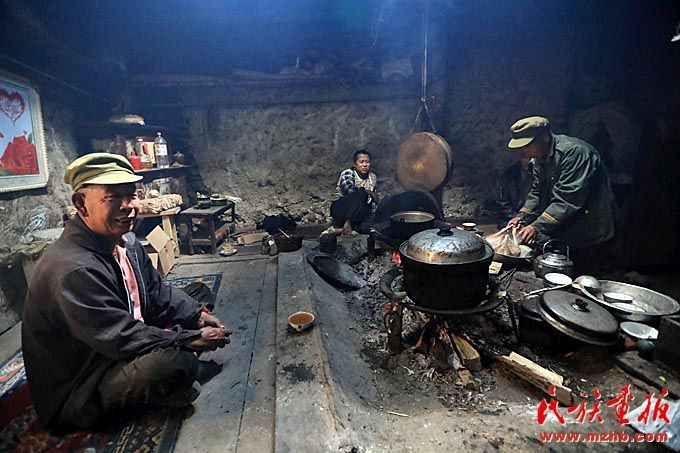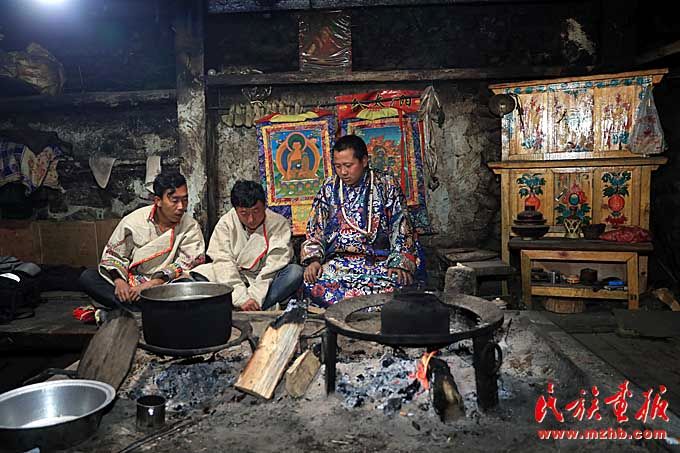 俄亚是木里纳西族东巴文化的发源地之一,现有十几位纳西族民间祭祀的祭师——“东巴”,他们还使用象形文字“东巴文”,在节庆与祭祀仪式中,能跳完整的“东巴舞”。在俄亚村十几位东巴中,年龄最大的已80多岁,小的20多岁。东巴职业传男不传女,一般在家族内部传承。43岁的宋交瓦尔告诉记者,他是东巴的第九代传人,家里有东巴经书100多卷,是祖辈留传下来的,这些经书平时放在精心设置的箱子里,用时才请出来,经过时间的浸泡,封面呈褐色。宋交瓦尔有两个男孩,却无一继承东巴的衣钵,想到这些传承千年的文化将在他手里失传,他说有时候茶饭不思,很纠结。可想到社会在进步发展,与几十年前,他们跟前辈学习东巴经时相比,变化太大。当时人们出生就囿于村落生活,娱乐项目单调,或在夜幕下,坐在忽明忽暗的火塘边,聆听长者讲述祖先们率领族人,战熊罴杀虎豹迁徙至此的传说,或在生老病死人生礼仪仪式中,领悟继承传统文化。“现在的年青人都不愿意学,怕吃苦,还没有报酬。”宋交瓦尔东巴用肯定的语气讲述,出现学习东巴文化年青人越来越少原因,是学东巴文化,需要背诵庞杂东巴经的内容,记住祭祀仪式程序,有的祭祀需要念诵几天几夜的经。