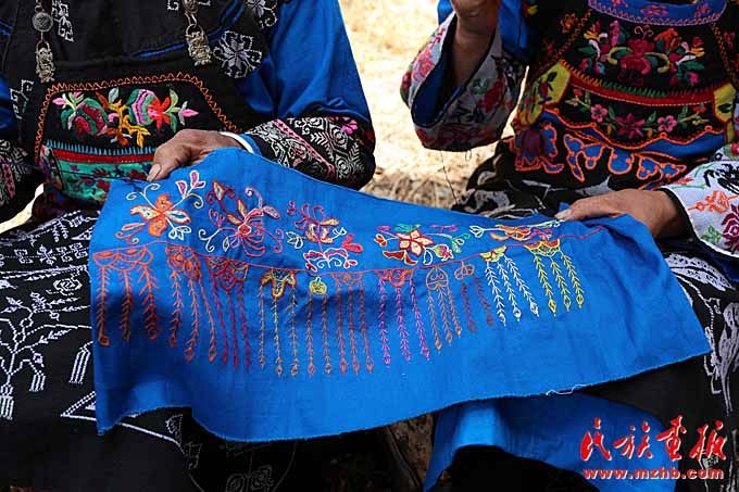 他们的服饰文化明显有与周围少数民族服饰相互学习借鉴的痕迹,在保留明清服饰长袍马褂款式的同时,吸取周围少数民族刺绣、染织技术,在服饰上绣大红大紫的图纹,在服饰的色彩上以蓝色黑色的冷色调为主。在项脚汉族服饰文化中,明显有彝族等周围少数民族头帕服饰文化元素,纳西族摩梭人长腰带文化特点。从中我们不难看出,不同民族文化相互借鉴的情况,这也是藏羌彝文化走廊里不同民族文化交往交流交融的特点。