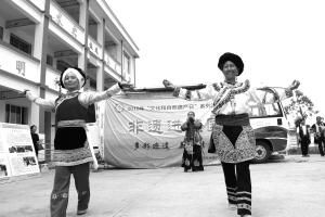 2018年6月5日,茶春梅(右一)在巍山县非遗进校园活动中,