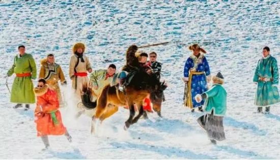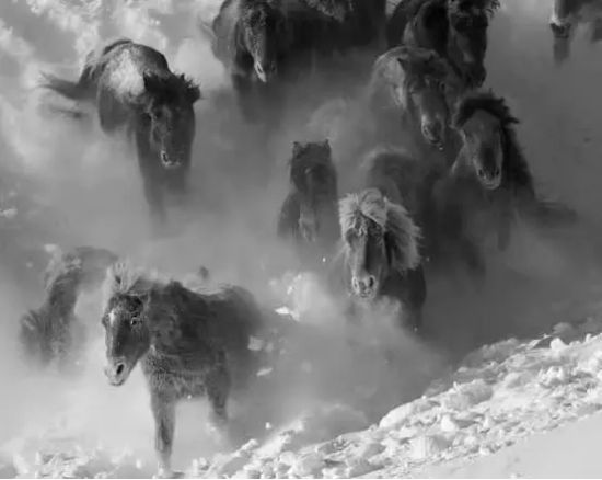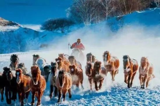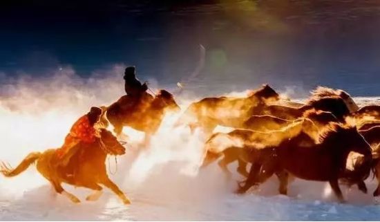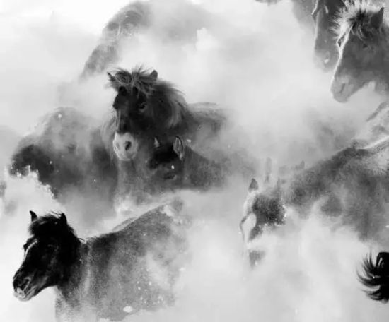 冬季的乌兰布统苏木坝上草原,美的别致。一场大雪,大自然毫不吝啬的肆意挥毫,将天地之间染成白茫茫一片,莽莽雪原上唯有蒙古马留下一串串的足迹,如果说白桦林是寒冬驻守坝上的卫士,那穿梭其间的骏马就是雪原上直面寒风的战神。昔日战火早已不再燃烧,雪原上空留的是蒙古马自由驰骋的痕迹,一道道斑驳的树影,一串串马蹄脚印,在空白的雪原上,绘制了一幅冬日坝上的印象图片。蒙古马不畏严寒雪中驰骋,勇往直前,所向披靡,一种坚强不屈,生生不息的精神深深撼动着每个人的心灵。蒙古马精神,成为一代人传承与弘扬的榜样。